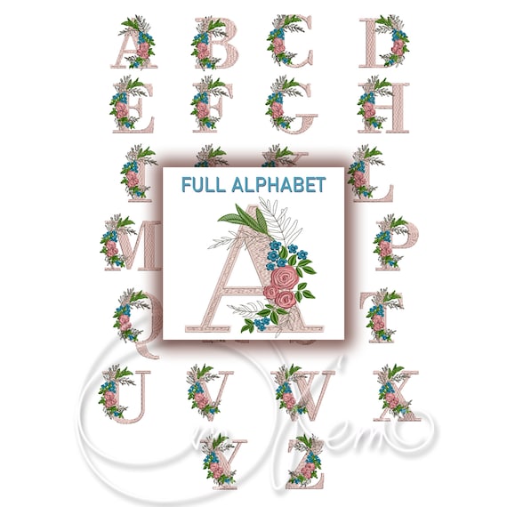 Machine Embroidery Design Flowered Letter Embroidery Full Set Etsy Uk